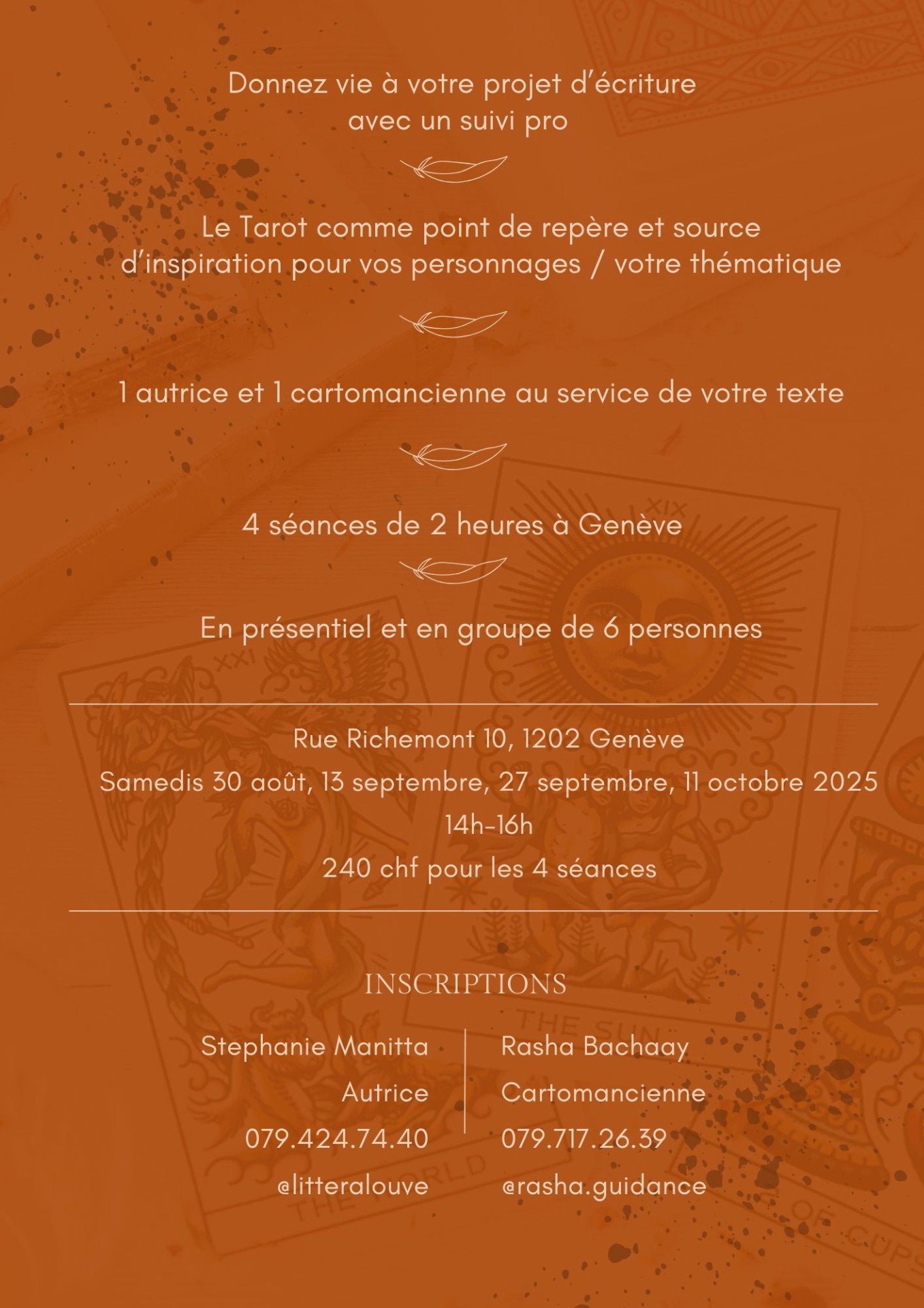 Car une autrice (Stéphanie) et une cartomancienne (Rasha) se mettront au service de votre texte